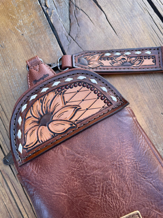Small sling crossbody bag - brown with