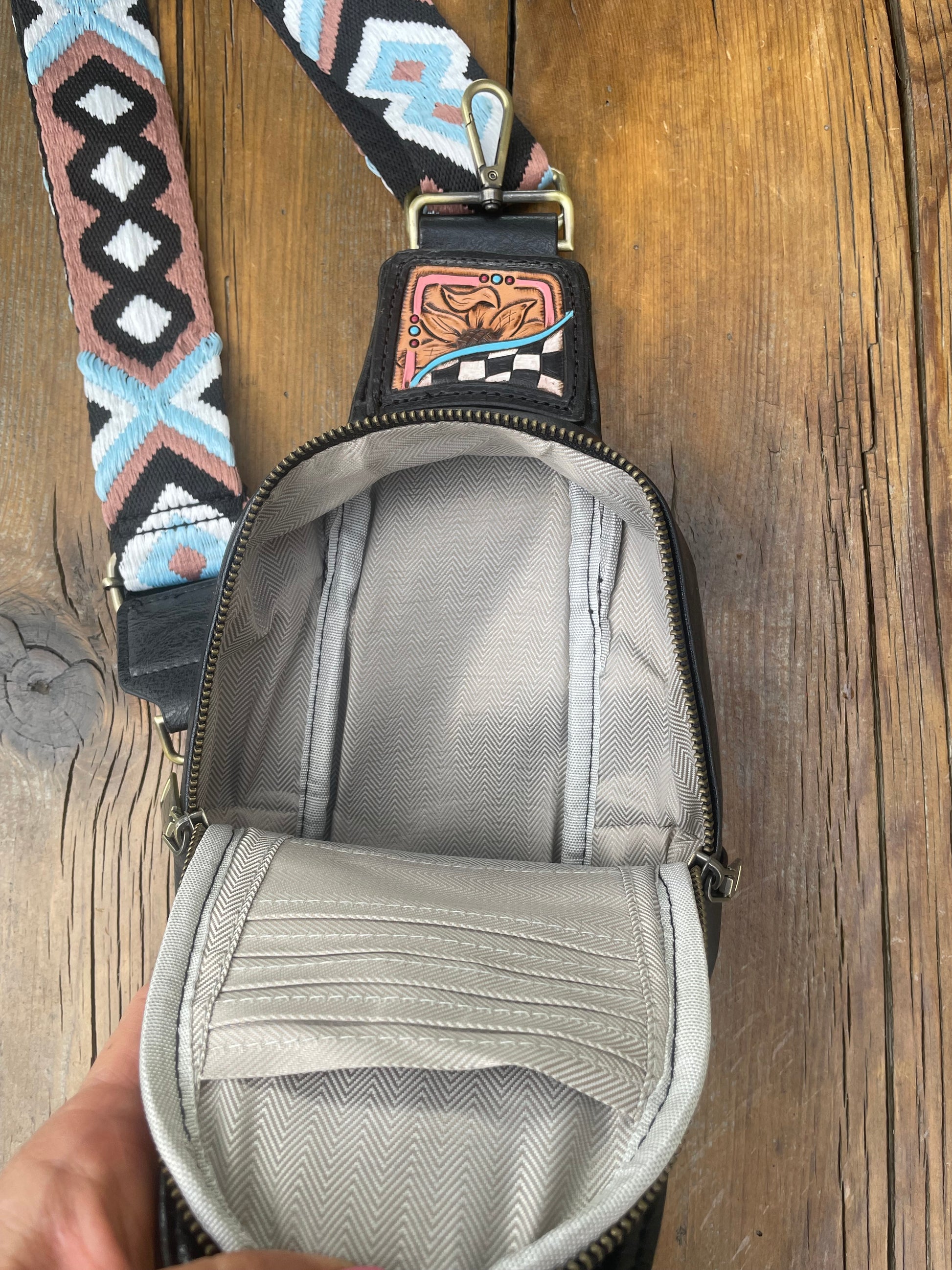 Sling bag. Measures 9 1/2” x 5”
